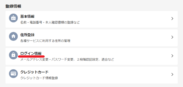 - ステップ2登録情報の項目から「ログイン情報」へ進みます。