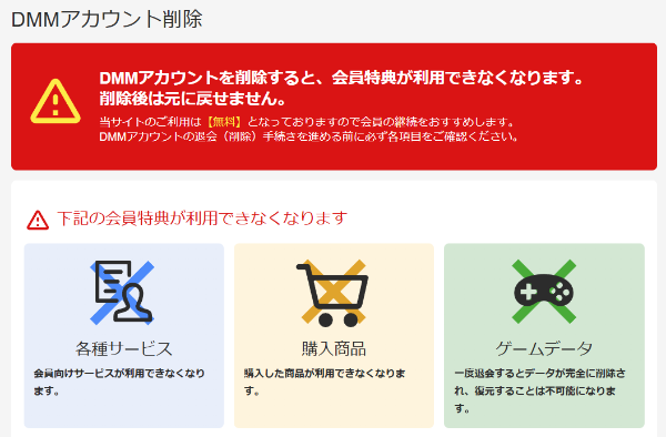 そのため、たとえ購入済みであっても、DMMアカウントを削除してしまうと動画を視聴することができません。